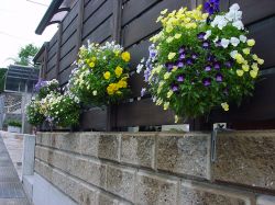 外構(がいこう)と呼びます。家を建てるまでこんな用語知りませんでした(笑)外構とは、玄関の門柱からアプローチ、庭の垣根、塀、駐車場など建物を取り囲むものの総称です。建物とこれらのものが組み合わさってはじめて「家」としての外観が出来上がります。 下の写真は我が家のブロック塀と木の囲いです。ここまでが外構で、最近ブームになっているガーデニングというのはこれらの外構を彩るフラワーバスケットのようなものを指します。