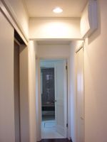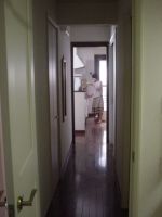 左の写真が洗面所+洗濯機置き場+脱衣所から見た台所。 右は台所側から見た風呂場。一直線なのがお分かり? もちろん風呂場の前の脱衣所には扉がついています。台所の奥は1階のテラスにつながっており、テラスの屋根につけた物干しに洗濯物を干すことが出来ます。着替えはこの途中にあるクローゼットの中に入っているのです。もともとの設計ではパントリーだったのですが、格好つけてられないよ!という理由でクローゼットに変身しました。これが最高! 帰宅するとまず、1階のクローゼットにスーツをかけ、そのまま一直線に歩いて汗ばんだ下着を洗濯機にほうりこみ、そのままこの廊下に戻って着替えをしてリビングに入ります。もしくはそのまま風呂に入ることもできます。ようするに2階に上がることもなく、ひとつの作業がスムーズに完結できるのです。洗濯導線は生活感のない、モデルルームでは絶対に気づかないポイントです。たまに家事をするときや、洗濯物干しを手伝うときに「この導線はいいな♪」と思います。 この一直線はお勧めですよ。 |